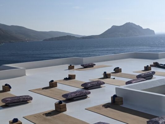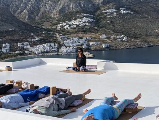 For the 7 days, I looked forward to our morning lessons on the main vayus of yoga and appreciated your practical explanations, the breath work felt great and was a wonderful way to start us into the physical practice of yoga. I loved that we ended our days with a yin yoga and a delicious dinner. This schedule was just right for what my body and mind needed—to slow down and reconnect. I truly appreciated all you efforts and hope to join you again on another journey. Thank you so much for this wonderful yoga retreat! – Cecile P.,2023 Greece Yoga Retreat